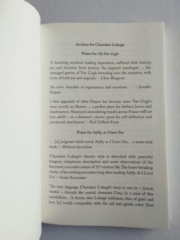 In poetic vignettes set against the fascinating exotics of Australia and France, Chandani Lokugé weaves a haunting and meditative story on the spectral gains and losses of travel, the nature of its transience. Through it, she dignifies with grace and tenderness, our unassuageable yearning, when we have lost everything and even ourselves, to anchor to something, someone, somewhere, and the unexpected moment of our arrival.