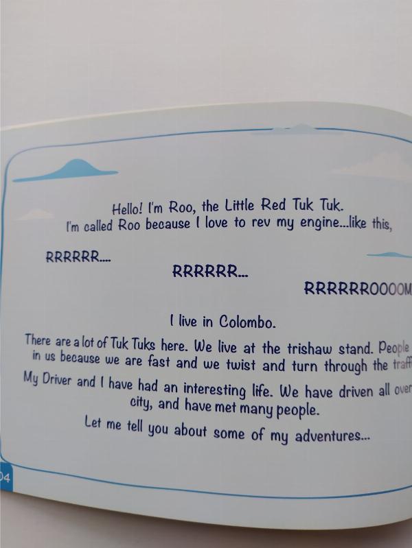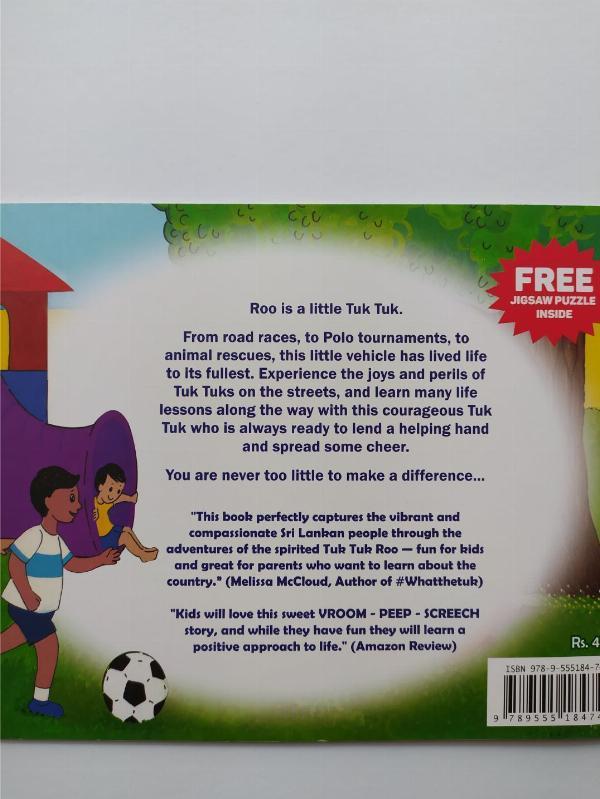 Roo is a little Tuk Tuk. From road races, to Polo tournaments, to animal rescues, this little vehicle has lived life to its fullest. Experience the joys and perils of Tuk Tuks on the streets, and learn many life lessons along the way with this courageous Tuk Tuk who is always ready to lend a helping hand and spread some cheer. You are never too little to make a difference...