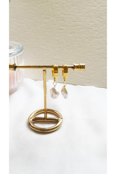 Thick hoop earrings with coin pearl - P230Thick hoop earrings with baroque pearl - P231