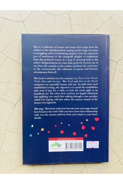 This is a collection of poems and essays that range from the sublime to the ridiculous; from soaring on the wings of ecstacy to struggling with overwhelming despair; from the capricious joys of matrimony to the changeful delights of singledom; from the profound ecstasy in a mug of steaming latte to the ardent disappointment in a less than perfectly brewed cup of tea; from the comedic to the somber and from the customary to the controversial, this collection of poems and features encompasses them all.