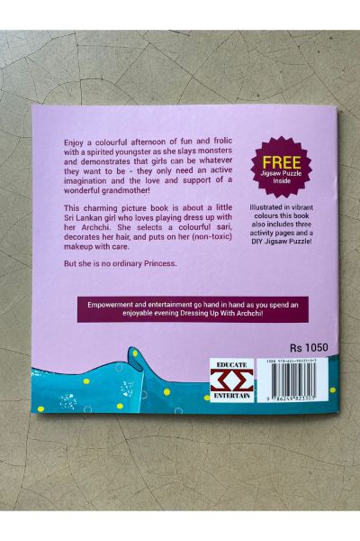 This charming picture book is about a little Sri Lankan girl who loves playing dress up with her Archchi. She selects a colourful sari, decorates her hair, and puts on her (non-toxic) makeup with care.