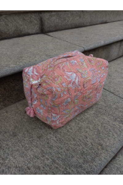 This delicately quilted multi purpose pouch is perfect for storing all your knick knacks. It is lightweight and soft and is ideally suited to store makeup or as a stionery case or even as a lovely travel case. Handmade in Sri Lanka.