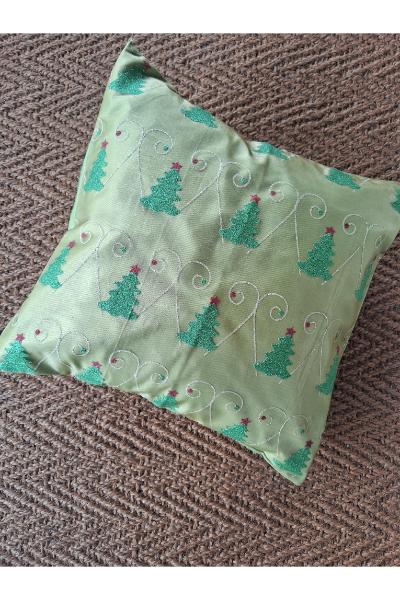 This intricately embroidered Green cushion cover is the perfect accessory for your seasonal living room!