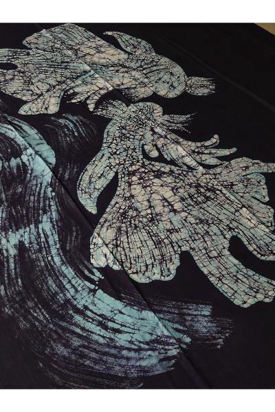 Koi Fish Design done using the traditional " resist" method of dying and batik, a traditional craft of Sri Lanka.