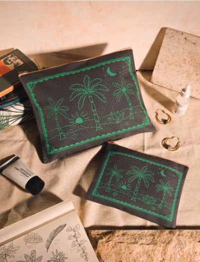 Heavy cotton zipped wash bag featuring hand illustrated wild plants from Sri Lanka. * Fully lined