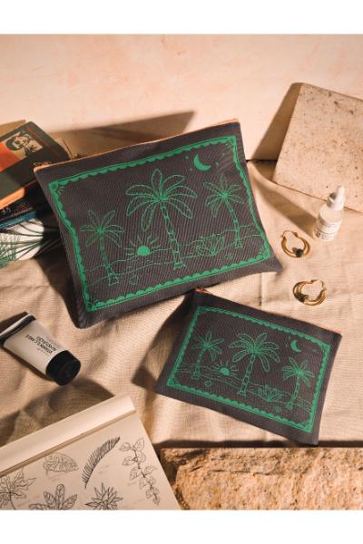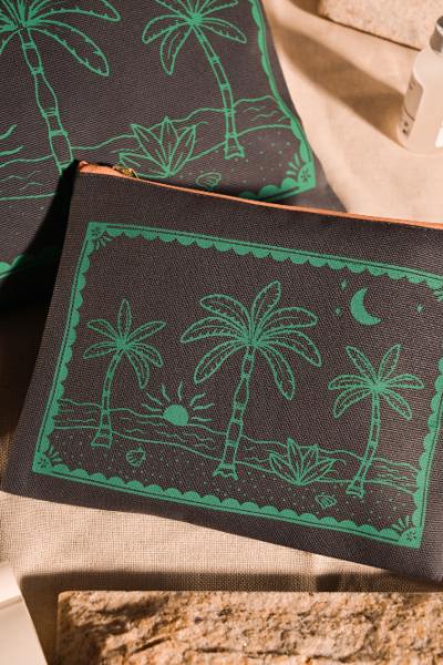 Heavy cotton zipped wash bag featuring hand illustrated wild plants from Sri Lanka. * Fully lined