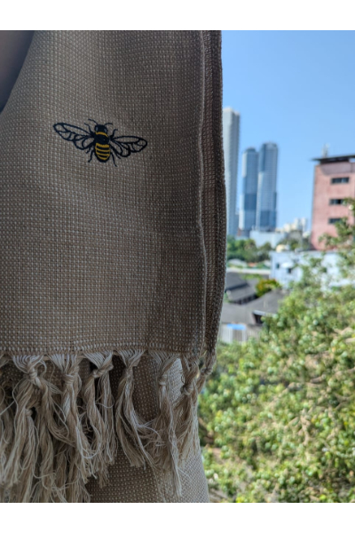 Our handloom handwoven beige table runner is a beautiful blend of craftsmanship and features delicately embroidered bees along the ends of the runner, adding a charming touch of whimsy and elegance to your dining table.