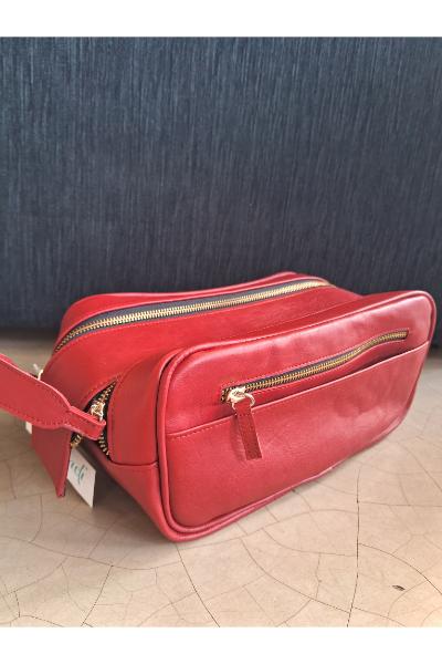 Leather Travel washbag - Rouge