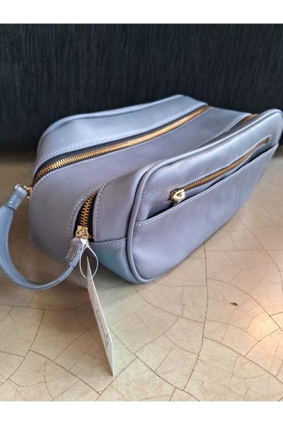 Keep your bathroom essentials stylishly with you when travelling with this wash bag. It secures with a top zip, and is finessed with beautiful hardware and an inner waterproof lining.