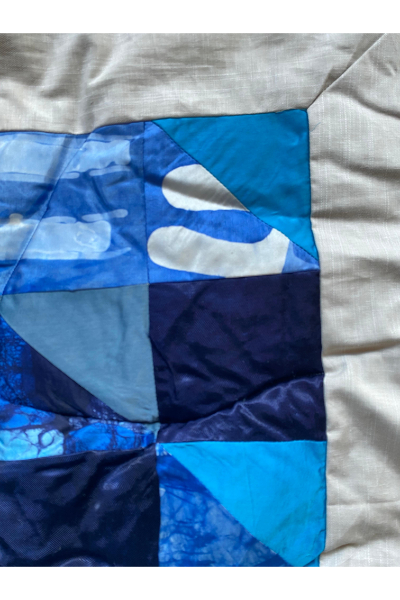 Add a burst of colour to your space with our vibrant blue batik patch quilt. Handcrafted using traditional techniques, each patch is a unique blend of rich tones and intricate batik prints. No two quilts are ever the same.