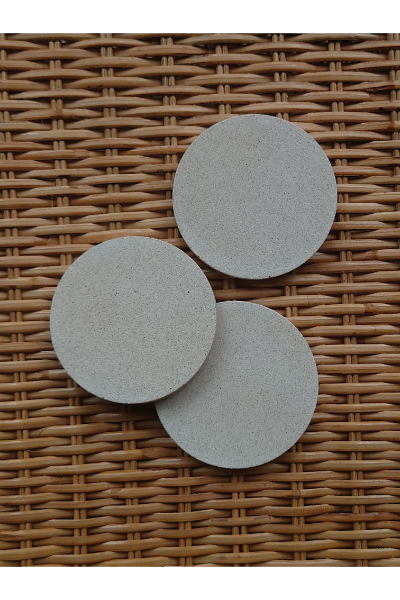Handmade circular coasters with a smooth stone-like finish and natural texture. Each piece is uniquely crafted, giving your space an understated yet refined touch.