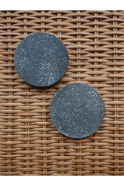 Handmade circular coasters with a smooth stone-like finish and natural texture. Each piece is uniquely crafted, giving your space an understated yet refined touch.