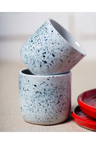 This Espresso set is a curated box of hand thrown ceramics, each piece featuring delicate, hand painted motifs. Inside each box, you’ll find: