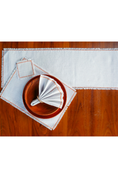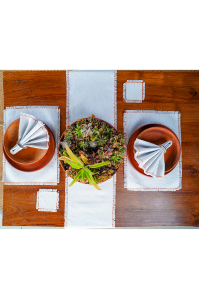 This hand embroidered, hand sewn set is a tribute to the beauty of slow design and thoughtful living.