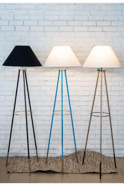 Sleek Tripod - White & Gold - White Linen Tapered ShadeSteel Tripod (Gold) - Black Empire ShadeSleek Tripod - Gold & White - Brown Kithul Shade