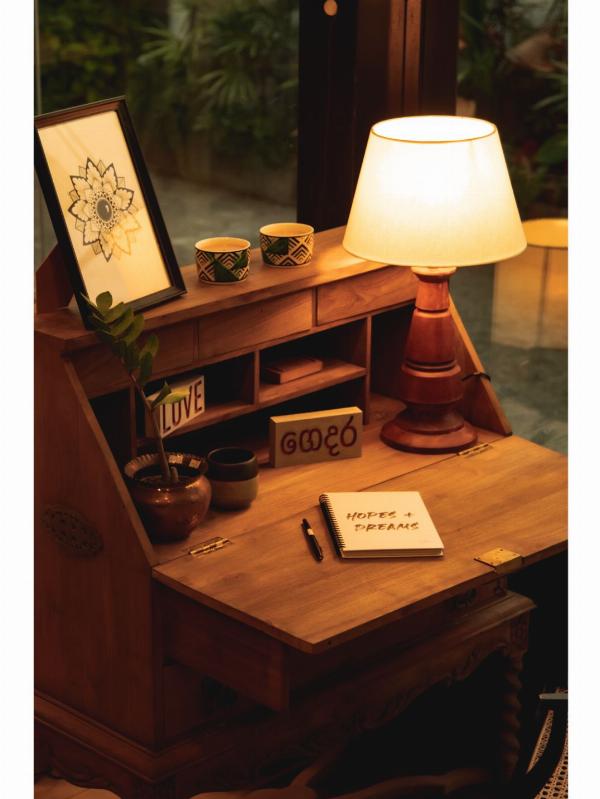 Handmade in small batches in Sri Lanka, our sustainable lamp bases and shades are crafted to last—each piece is made with care and intention. Gently dust with a soft brush or cloth; never lift by the holder or shade.