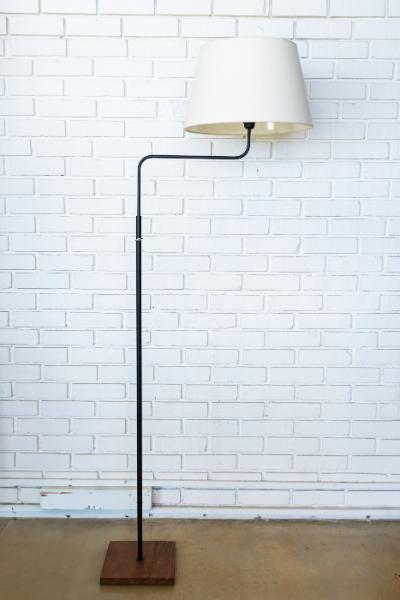 Mara wood base, Powder coated steel stand, fabric shade
