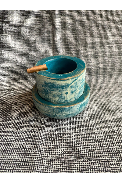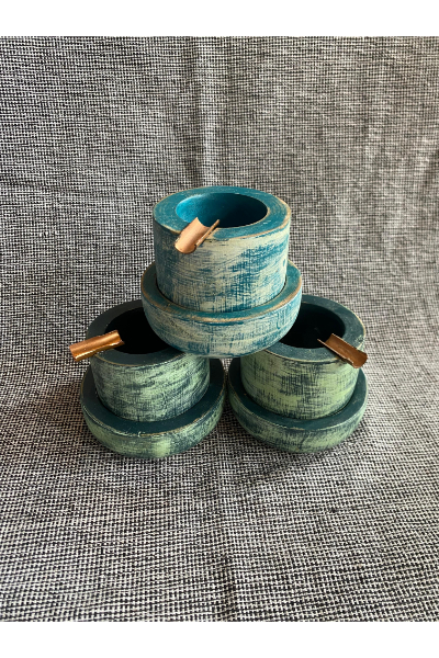 Wood & Copper Ashtray - Teal