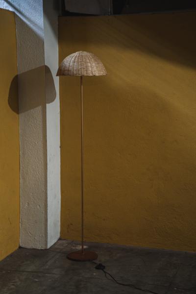 Gold Plain Jane floor lamp - Cane Punch Bowl Shade
